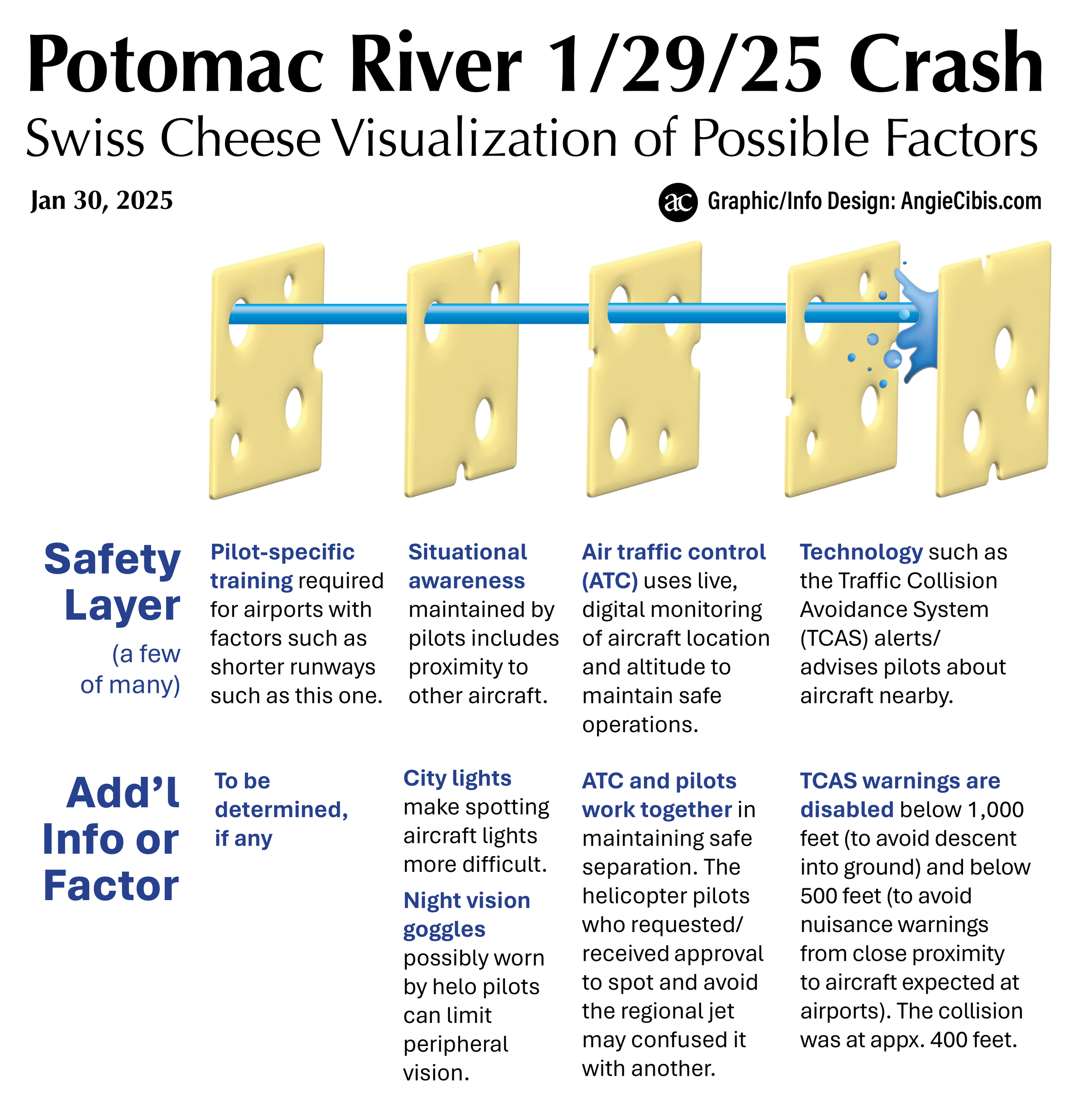 As a graphic/info designer who happens to be an AVGeek, I quickly put this together in case it helps explain potential factors contributing to the horrible mid-air collision at Reagan Int'l. My thoughts are with the friends and families of the passengers, crew, and ground/ATC personnel.